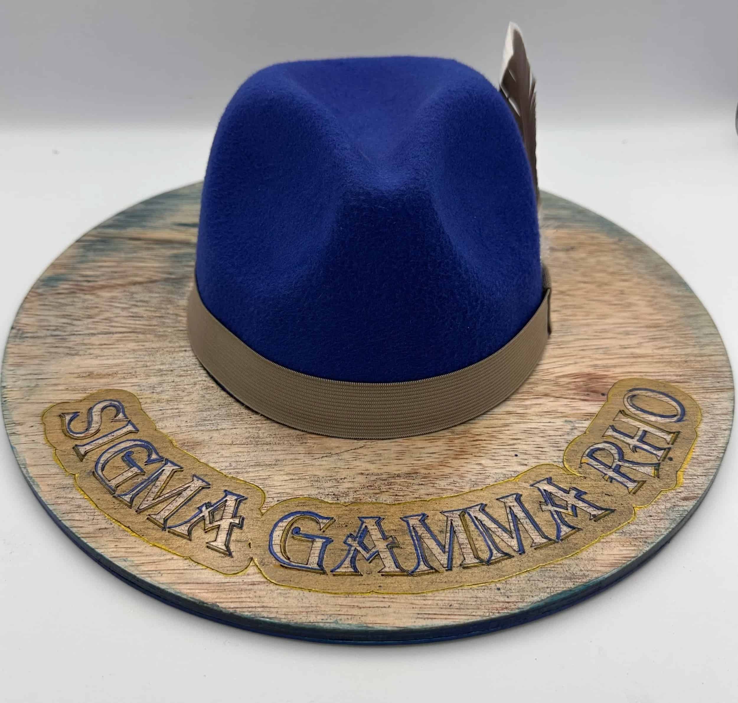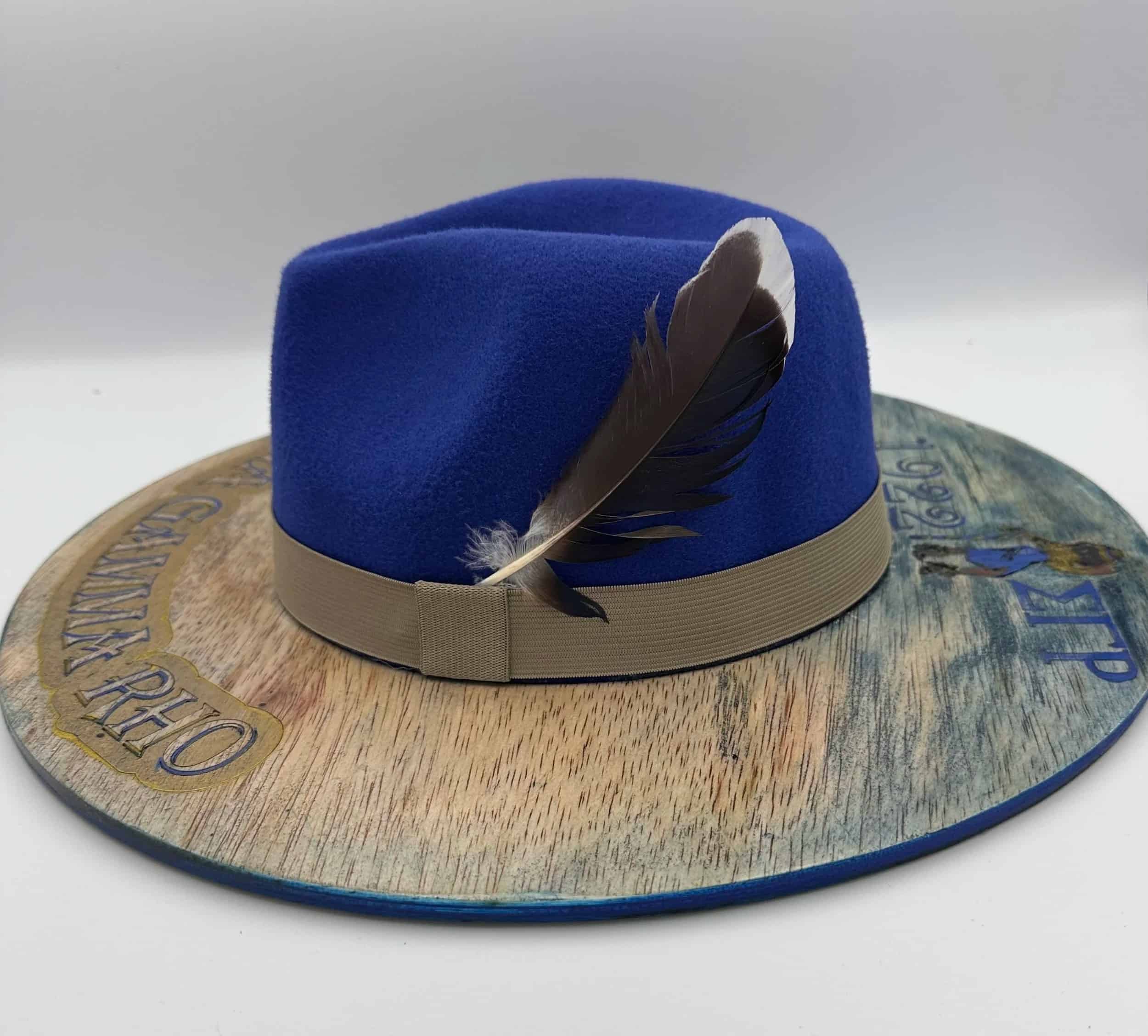 Radiant in royal blue and gold, this handcrafted wooden brim hat is a tribute to strength, sisterhood, and service. Designed to honor the legacy of Sigma Gamma Rho, this piece merges luxury with purpose—featuring a premium wool felt crown and an artistically crafted wooden brim that captures both elegance and pride. Whether you’re stepping into a celebration or simply owning your space with confidence, this hat lets the world know you represent Sigma Gamma Rho with unmatched style and grace.